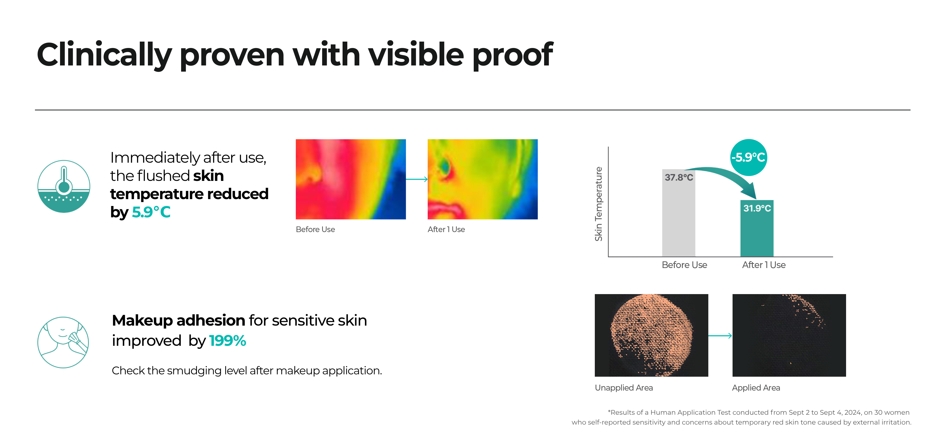 more viewA.This product is designed with sensitive skin in mind, which can easily react to cooling agents. Instead of using menthol-based ingredients for a cooling effect, it features a specialized sheet material that effectively releases heat. As a result, it helps relieve heat associated with temporary redness caused by external irritation in just three minutes, providing fast cooling and soothing benefits. It has also passed testing on panels with sensitive, redness-prone skin, making it suitable for sensitive skin types.